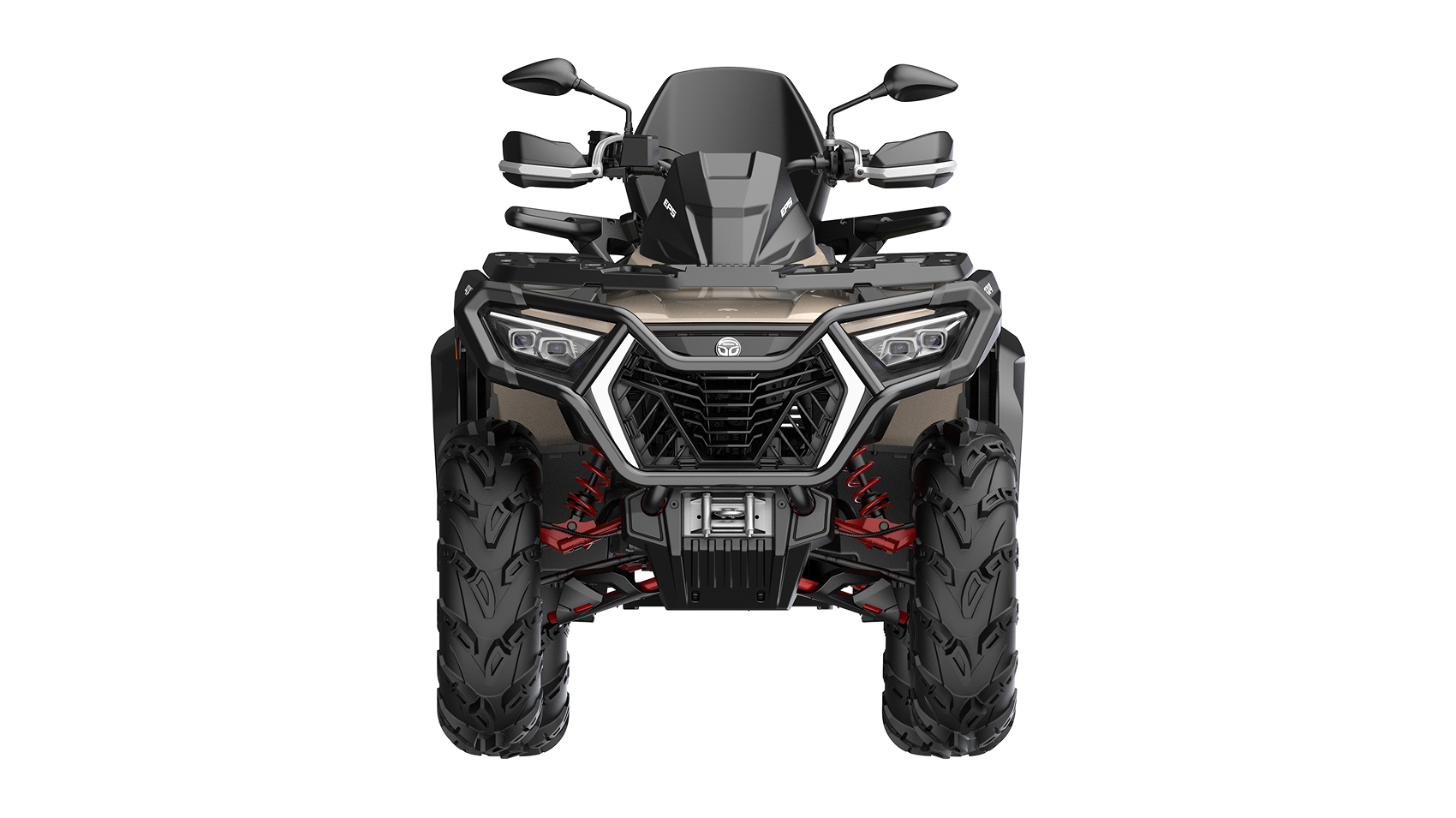 Размер колёс легкосплавные диски, шины АТ 26×12−12 с агрессивным протектором.