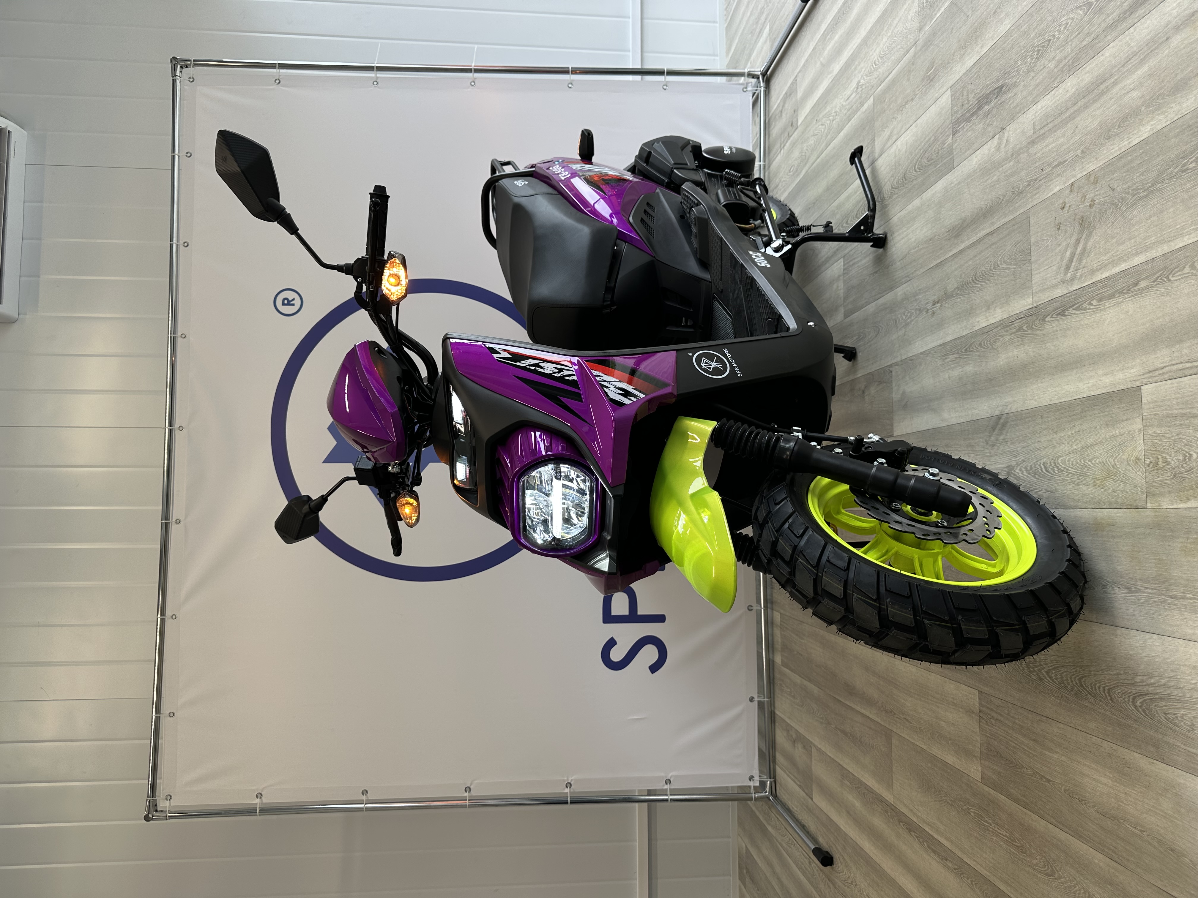 Яркий фиолетовый скутер SPRMOTORS Zoom‑10 добавит красок в ваши ежедневные поездки и выделит вас в городском потоке. Эта модель — отличный вариант для тех, кто хочет совместить практичность с индивидуальностью: подойдёт как активным горожанам для передвижения по делам, так и молодёжи, ценящей необычный дизайн и лёгкость в управлении.